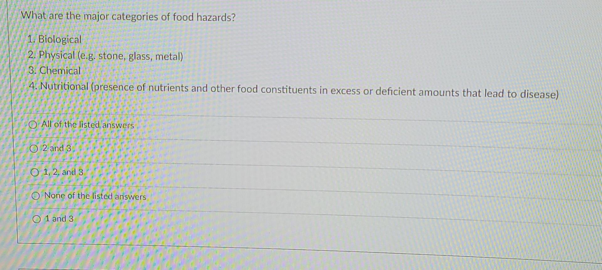 Solved What Are The Major Categories Of Food Hazards 1 Chegg Com